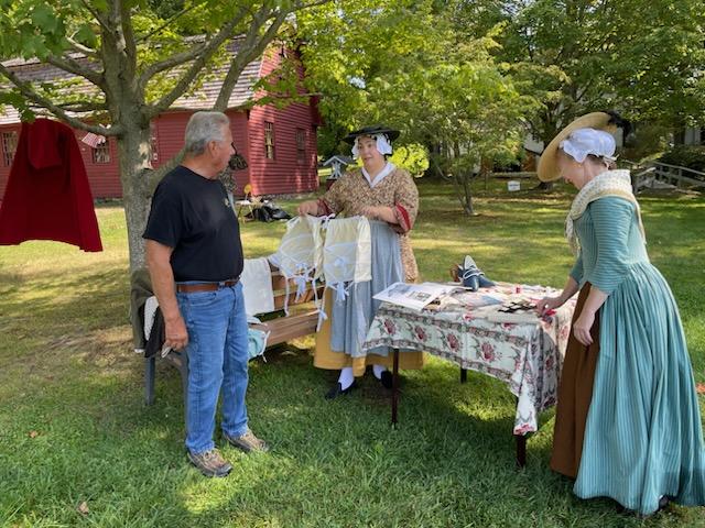 Underpinning the sensationalism of battle reports & broadsides is the often silent steadiness of women’s work with textiles. The choices they made every day about fashion and fabric consumption & creation drove the course of Revolution just as determinedly as any congress. As southern New England commemorates the 250th anniversary (semiquincentennial) of the War for Independence, it is these local lives dressed in fulled wool or spun silk that continue to inspire creativity, resilience, and empathy in us today. From the mythology of homespun to legends of midnight rides in red cloaks & calashes, the Dirty Blue Shirts share stories of women who waged war on multiple fronts as well as a look at what they wore as their worlds turn’d upside down. This program is presented by costumed historians and includes reproduction clothing pieces & fabric samples as well as a PowerPoint presentation with images of extant originals.